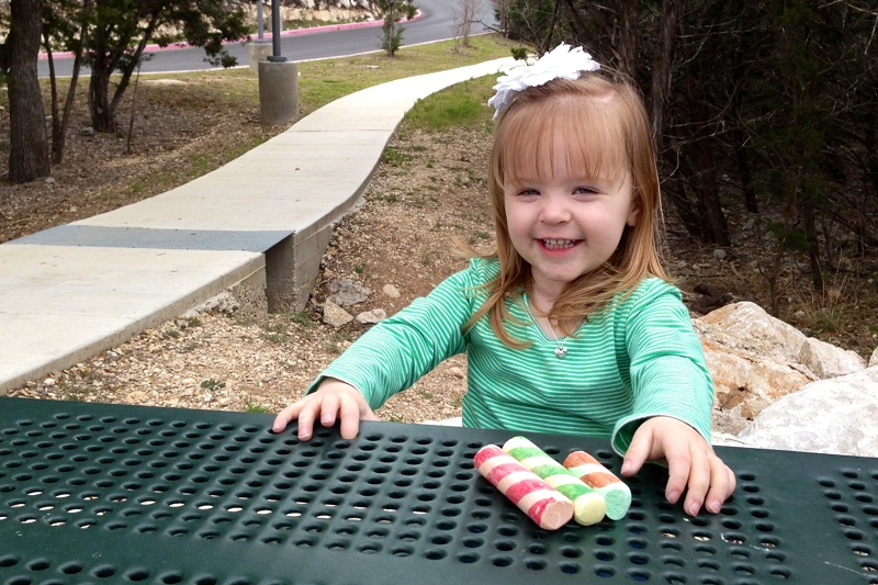 St. Patrick's Day fell on Sunday, March 17th, this year. It was a perfect morning for the park. So, with our coffee cups in tow, we loaded up the grocery-getter & headed out. The kids played & played. We all walked along the trails & then the Twins colored on the pavement with chalk. It was a wonderful way to spend the day.