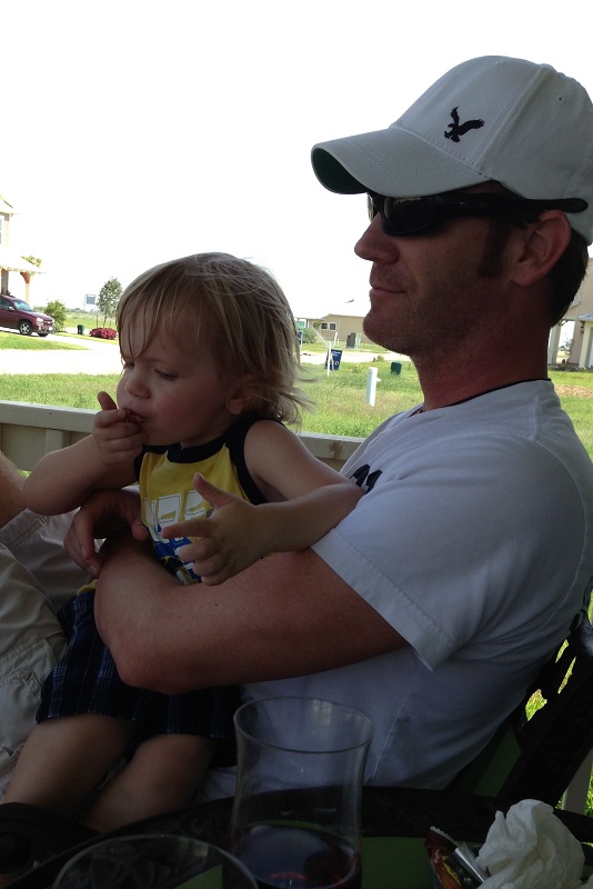 I'd be remiss if I didn't add photos of how we manage to pull off potty training while traveling: Some of our best times at the coast are spent just hanging out on the back patio, taking walks to the gazebo & hanging out with Grandaddy, Snoopy & Pepper.