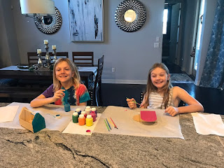 At Christmas in Comfort Jett & Delilah made little, wooden boxes. Jett's was a tool box & Delilah made a heart shaped jewelry box. On a Sunday afternoon they painted them.