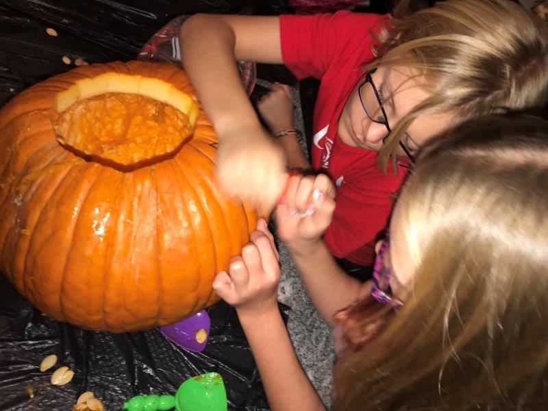 October just wouldn't be the same if we didn't do a little pumpkin carving. We invited our sweet neighbors, Jaston & Hadley Bivens, over to join in the fun.
